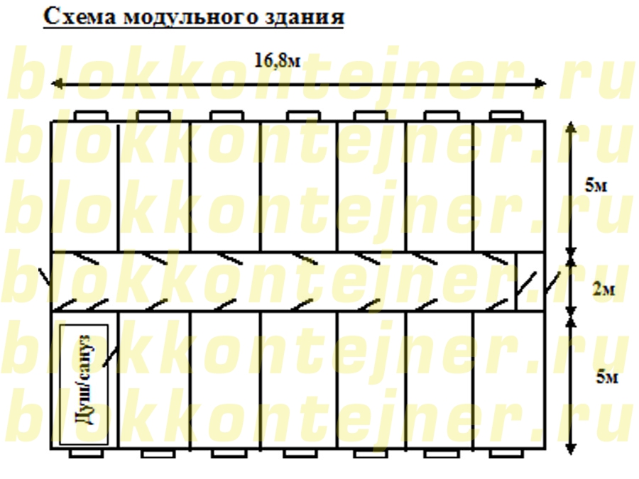 Модульное здание 16,8 *12,0*2,5м  состоит из 14 БК